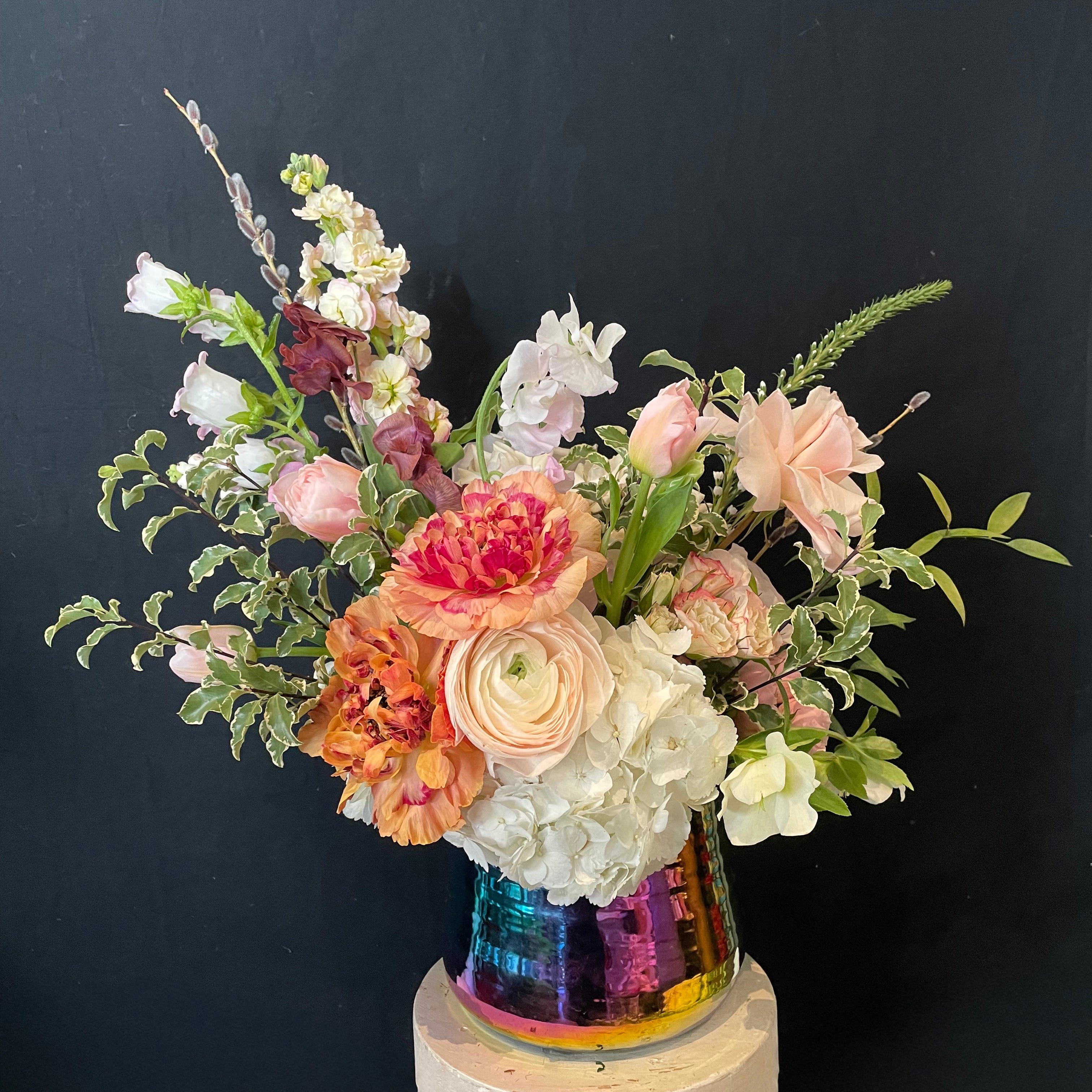 Designer's choice. Flowers and color choices may vary. Call the shop if you'd like to make special requests or preferences for flowers.