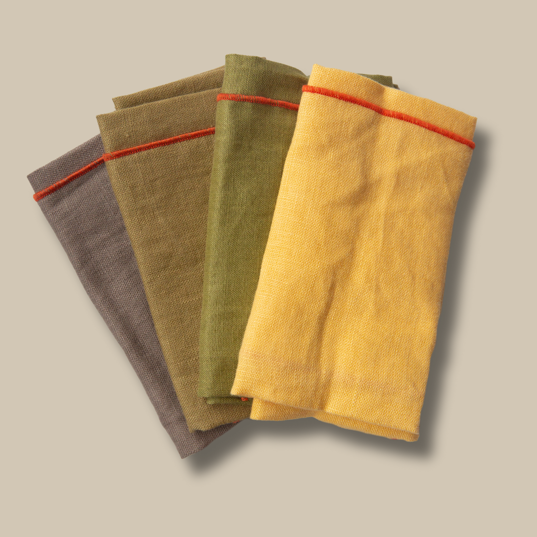 Curated pack of 4 linen napkins in the exclusive West Coast Handmade meadow mix includes various fabric weights comprised of 4 colors lovingly brought together for maximum enjoyment