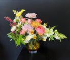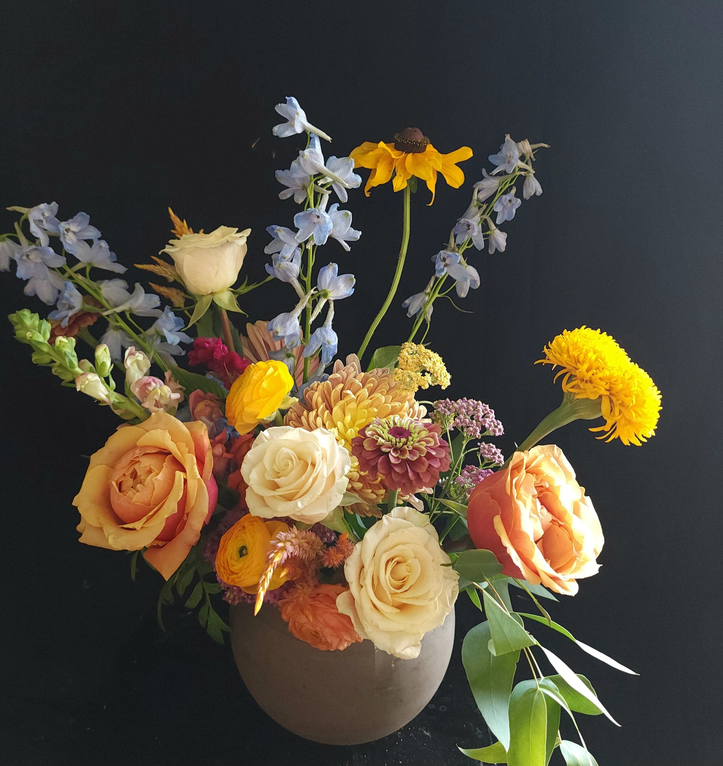 Our arrangements are designers choice and vary based on which flowers are in season! If you have color preference we will do our best to accommodate. Please note any desired specifications when placing your order or give us a call to discuss what options are available!